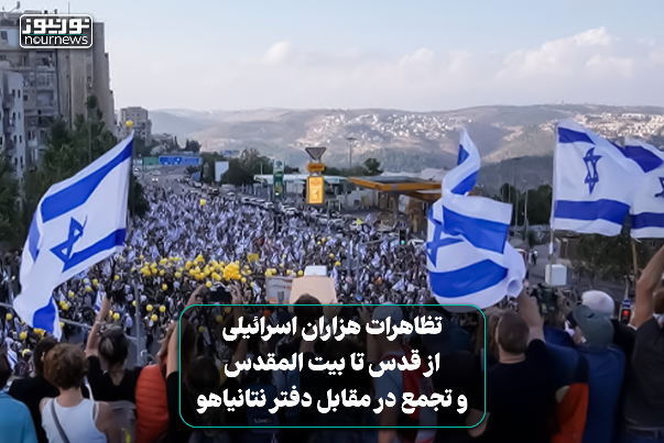 فیلمی از تظاهرات هزاران اسرائیلی از قدس تا بیتالمقدس و تجمع در مقابل دفتر نتانیاهو