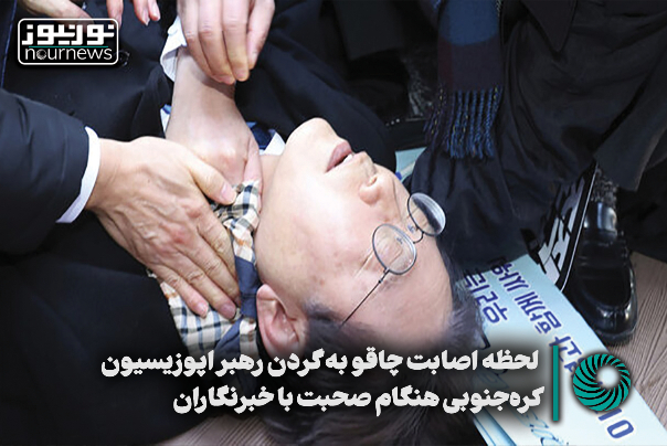 فیلمی از لحظه اصابت چاقو به گردن رهبر اپوزیسیون کرهجنوبی هنگام صحبت با خبرنگاران