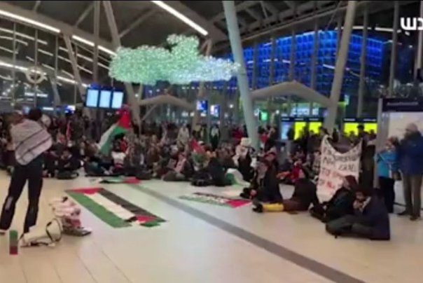 صدها هلندی با تحصن در ایستگاه قطار شهر زاندام به حمایت از مردم غزه پرداختند +فیلم