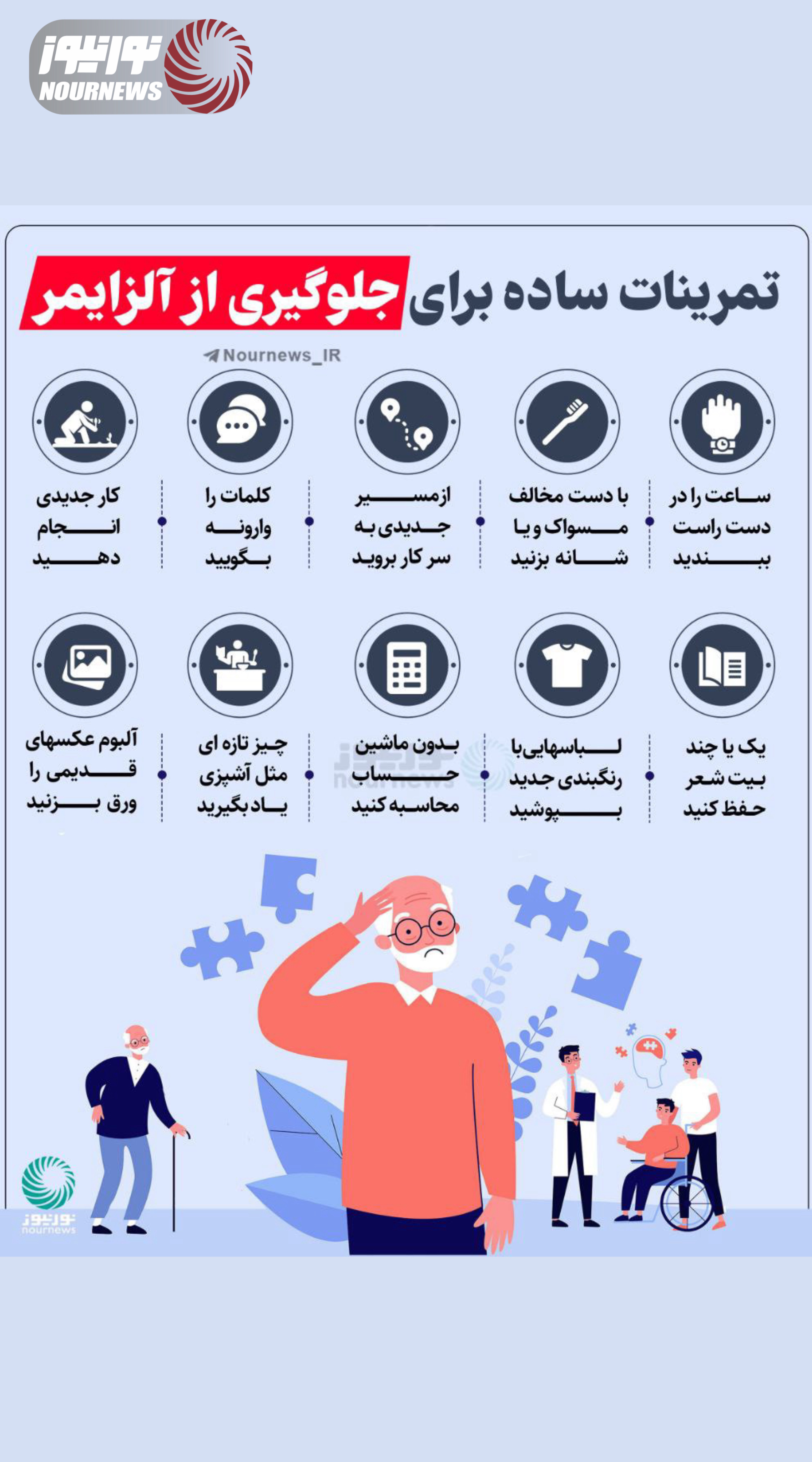 نور نیوز / اینفوگرافی / نوراینفو / آلزایمر / فراموشی / تمرینات / ساده