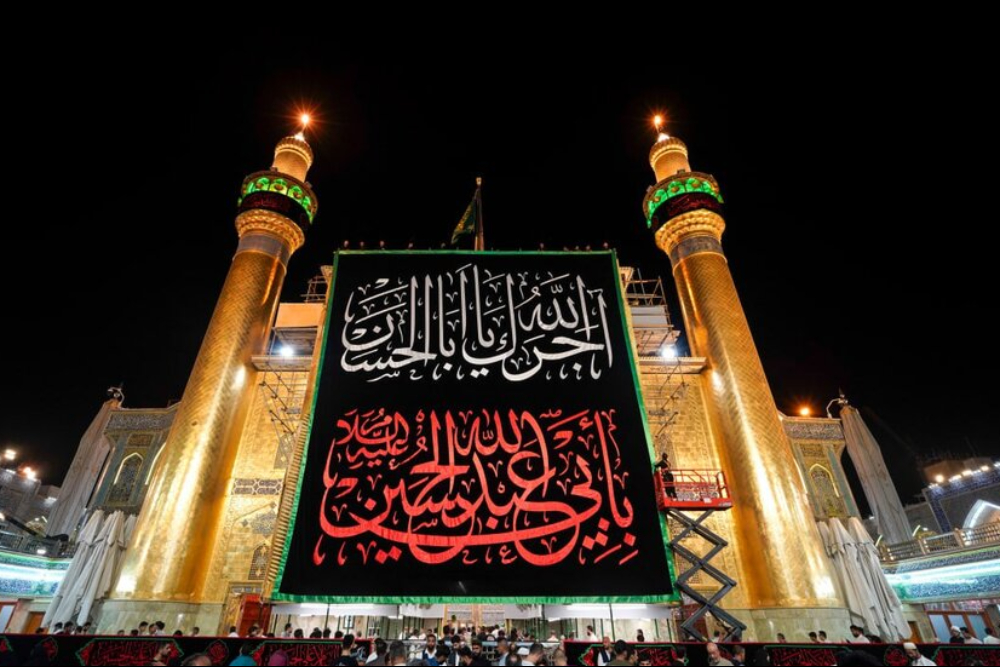 در آستانه فرارسیدن ماه محرم، حرم مطهر امام علی (علیهالسلام) در نجف اشرف سیاهپوش شد و خادمان حرم اقدام به نصب کتیبهها و پرچمهای عزا کردند.
