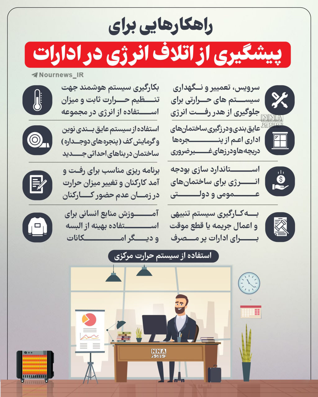 نوراینفو | راهکارهایی برای پیشگیری از اتلاف انرژی در ادارات