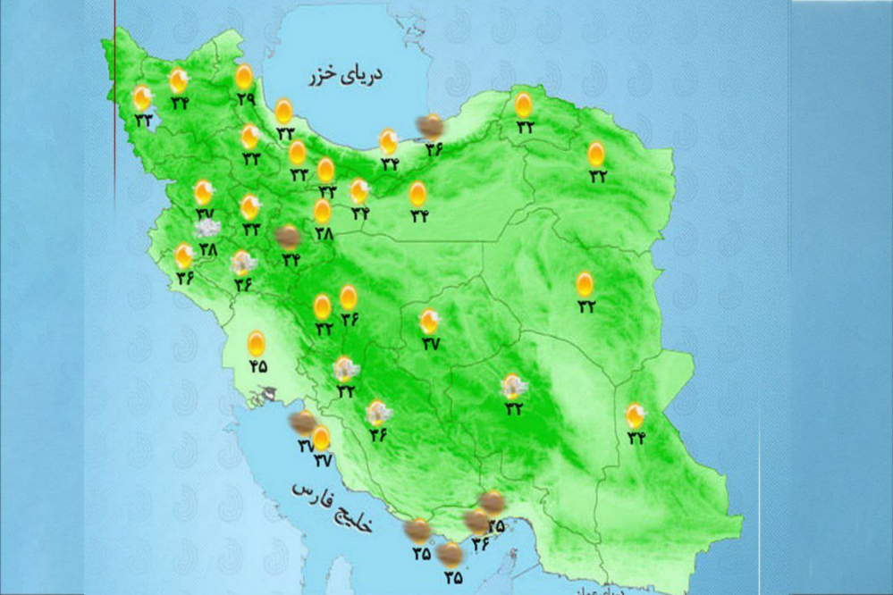 بر اساس این پیشبینی شنبه در شمال آذربایجان غربی، برخی نقاط در سواحل دریای خزر، ارتفاعات البرز و یکشنبه و دوشنبه در غرب سواحل دریای خزر احتمال افزایش ابر و بارش پراکنده وجود دارد.