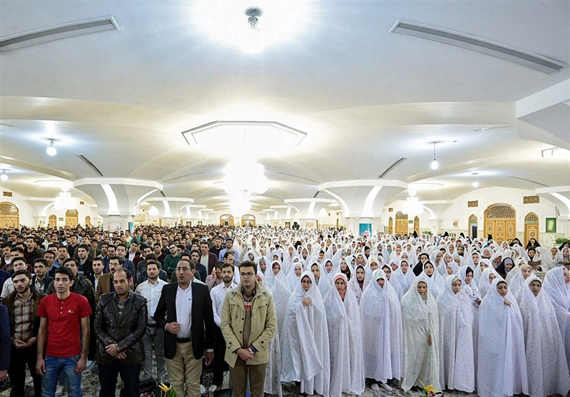 آیین جشن این گروه از زوجهای جوان با قرائت آیاتی از کلام الله مجید آغاز شد و با قرائت زیارت امین الله و مداحی توسط مداحان و ذاکران اهل بیت عصمت و طهارت(ع) تقی زاده و هادی الهی ادامه پیدا کرد.