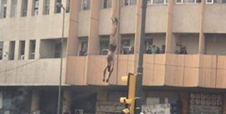 «هیثم علی اسماعیل» نوجوان ?? ساله عراقی پنجشنبه گذشته به طرز فجیعی توسط اغتشاشگران در میدان «الوثبه» بغداد کشته و از تیر چراغ راهنمایی به دار آوریخته شد.