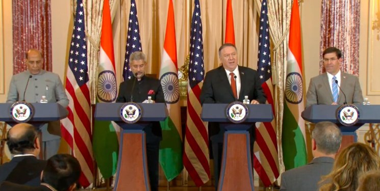 «پامپئو»، همراه با «مارک اسپر»، وزیر دفاع آمریکا امروز چهارشنبه میزبان «سوبرامانیام جایشانکار» و «راجنات سینگ»، وزرای خارجه و دفاع هند بودند.
