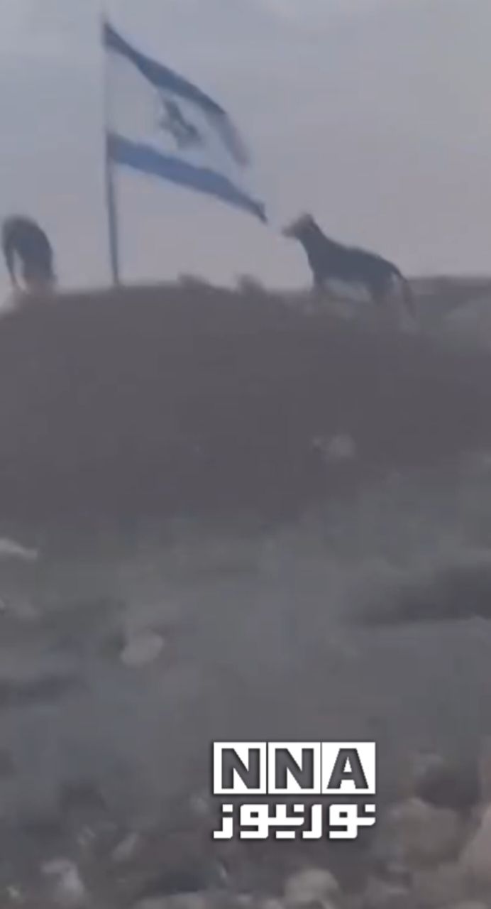 בבית לחם שבגדה המערבית, כלב מנסה להפיל את דגל ישראל.