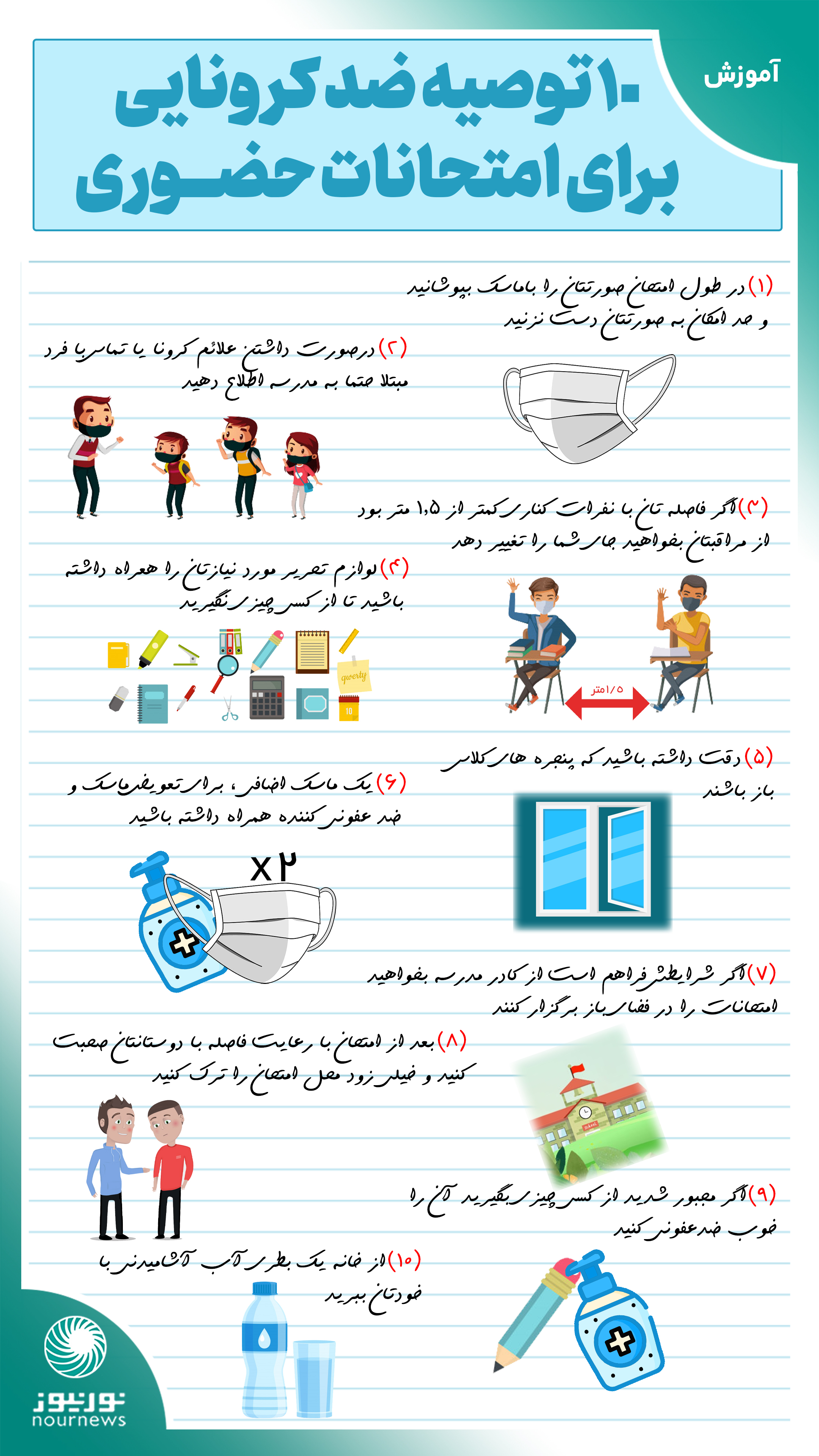 اینفوگرافی: ۱۰ توصیه ضد کرونایی برای امتحانات حضوری